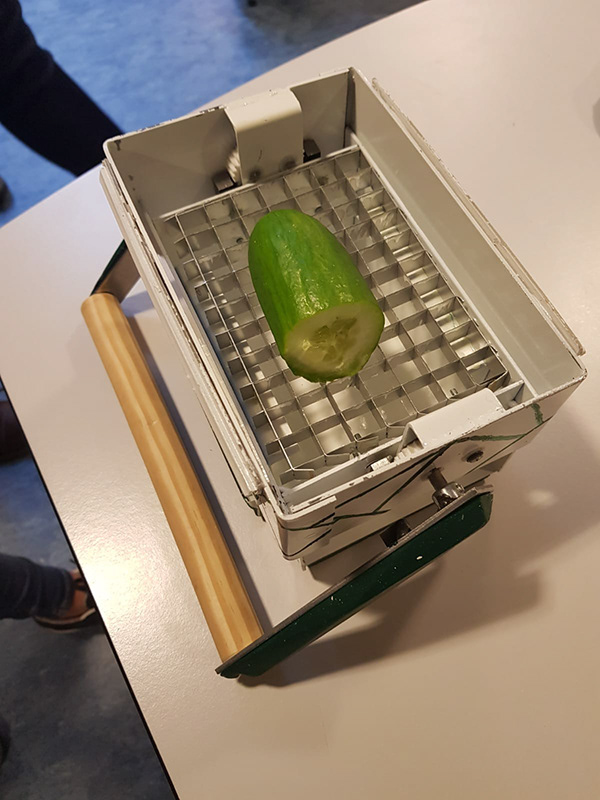 The key idea behind this lunchbox was to keep vegetables fresh by storing them whole on one side of the box. Just before eating, users could slice them using an integrated cutting mechanism—a handle connected to internal blades—ensuring the freshest salad possible.